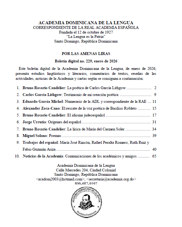 Acceda desde aquí al Boletín mensual de la Academia Dominicana de la Lengua bajo la dirección de Bruno Rosario Candelier, correspondiente al mes de enero de 2026.