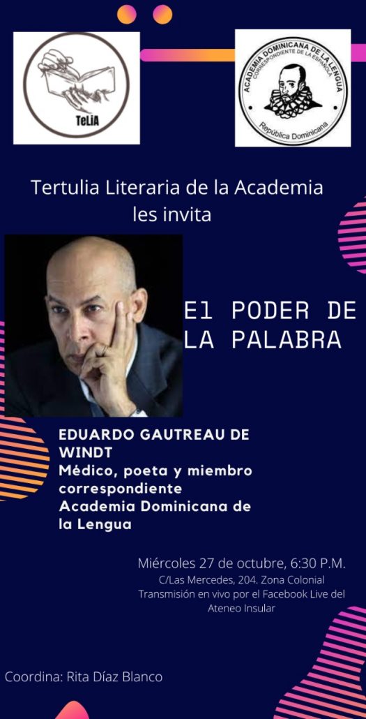 Tertulia literaria de la Academia con el tema «El poder de la palabra» y como invitado el académico Eduardo Gautreau de Windt. Miércoles 27/10/2021 | 6:30 p. m.