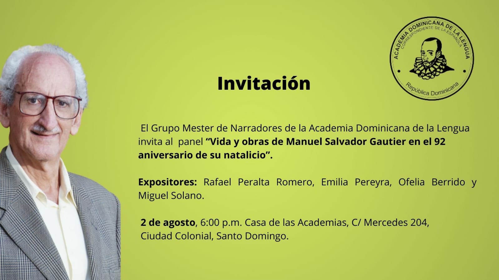 Acto de ingreso de Gerardo Roa Ogando y Bartolo García Molina como miembros correspondientes de la Academia dominicana de la Lengua. Sábado 13 de agosto | 10:00 a. m.